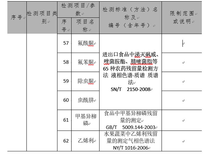 4,招標文件要求的項目/方法在檢測機構資質附表的哪一頁,序號多少?